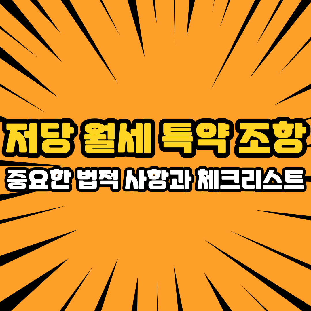 특약을 작성하는 데 있어 신중하게 고려하고, 필요하다면 법률 전문가의 도움을 받는 것이 좋습니다. 저당 월세 특약 조항을 정확하게 작성하여, 안정적이고 원활한 임대차 관계를 유지하시길 바랍니다.