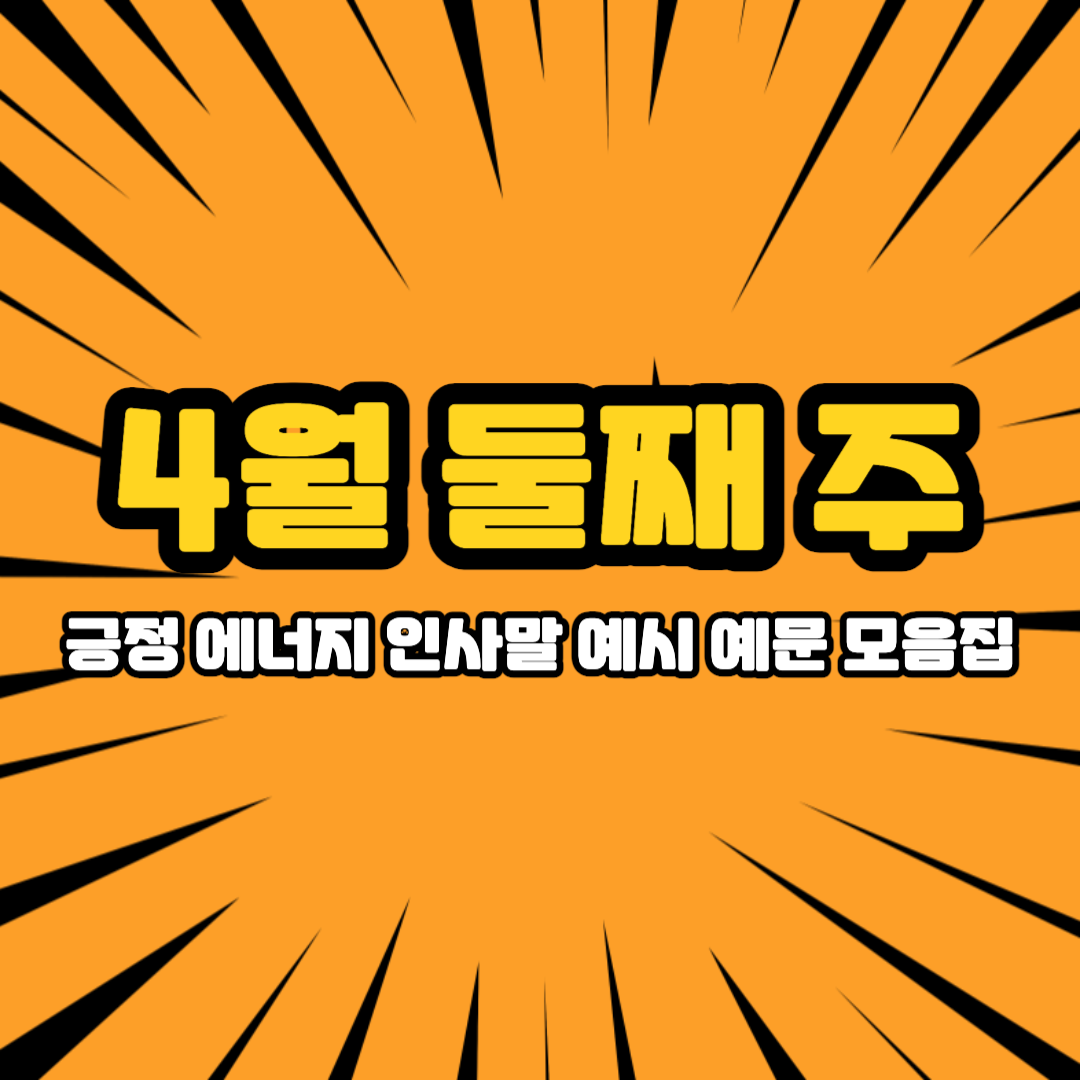 - "활기찬 4월 둘째 주 시작하세요! 이번 주도 에너지 넘치는 멋진 한 주 만들어 가시길 응원합니다!"